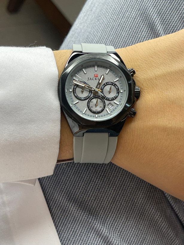 ساعت اورجينال مردانه از برند جاكلين ،سه موتوره،نمايشگر شب روز،كيفيف اورجينال،ضداب،بند رابر درجه يك ضد اب،با دوسال كارت نمايندگي،پك كادويي اورجيناليك عدد