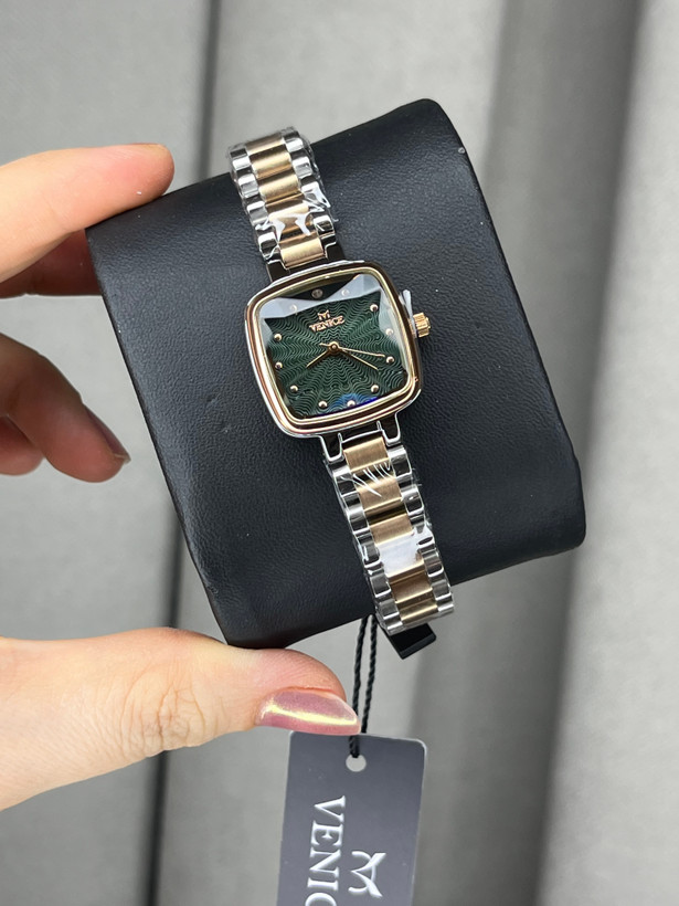 ساعت اورجینال زنانه از برند ونیز ایتالیا، با ترکیب شیشه منشوری وصفحه مینیمال مربعی که جذابیتی خاص به رخ ساعت داده .همراه یک سال گارانتی معتبر،پک اورجینالیک عدد