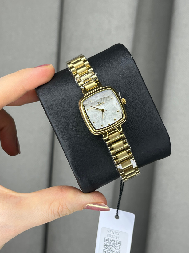 ساعت اورجینال زنانه از برند ونیز ایتالیا، با ترکیب شیشه منشوری وصفحه مینیمال مربعی که جذابیتی خاص به رخ ساعت داده .همراه یک سال گارانتی معتبر،پک اورجینالیک عدد