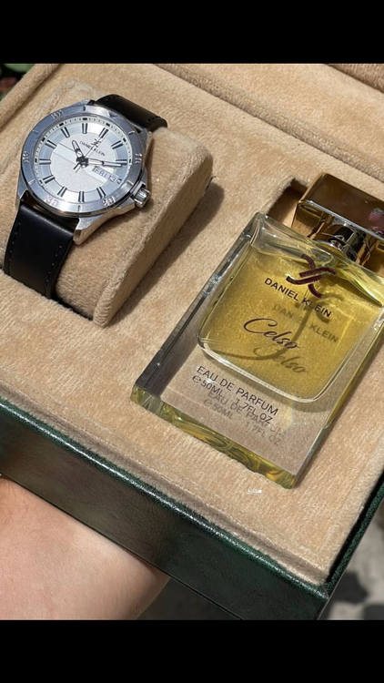 ساعت اورجينال مردانه همراه با ادكلن اورجينال از برند دنيل كلين ي كار فوق العاده مخصوص سوپرايز هارخاص كاملا اورجينال